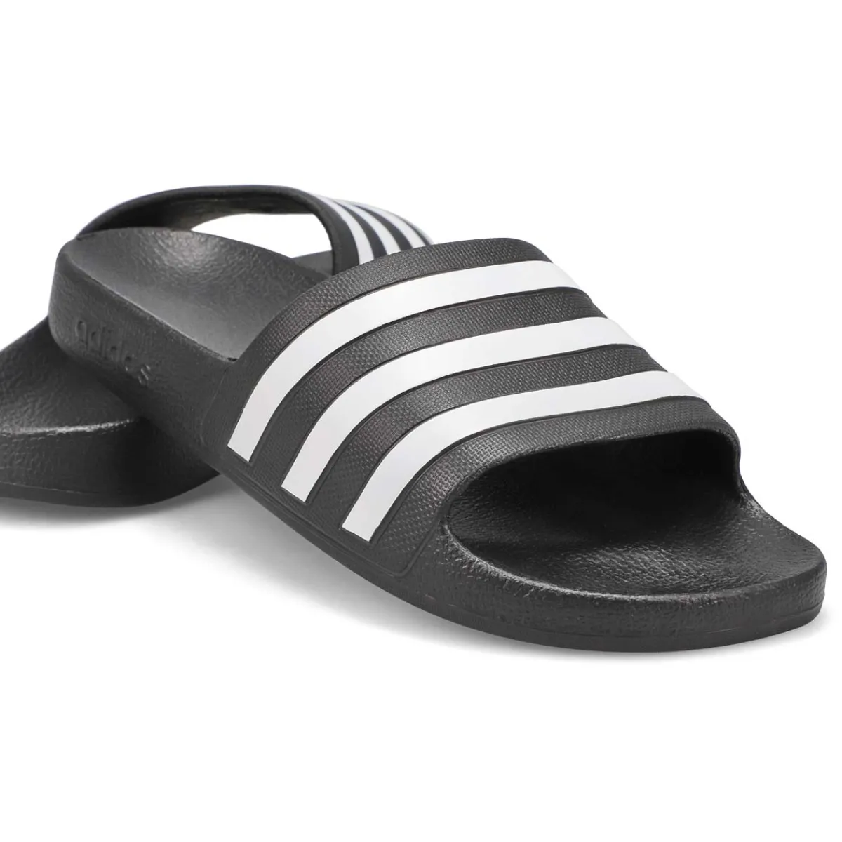 Quick drying Slides with 3-Stripe Style! An iconic style for slick surfaces. These Adilette Aqua slide sandals by Adidas are quick-drying slides flash 3-Stripes across the bandage-style upper. Plush cushioning in the footbed provides the ultimate in comfort in and out of the shower.