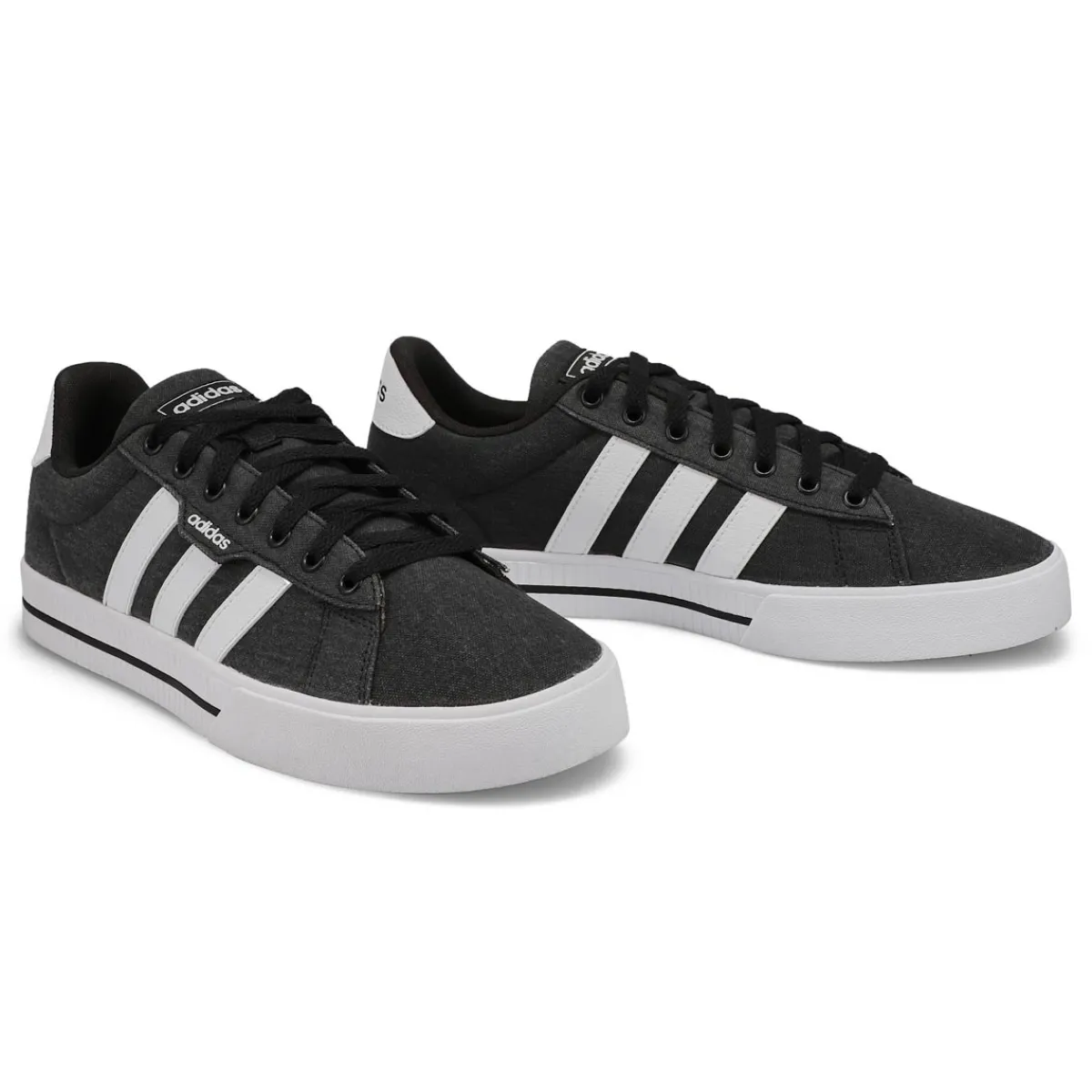 A fresh take on a classic, the Daily 3.0 black/ white lace up sneakers from Adidas blends a heritage feel with modern materials and design. Your walk across campus has never looked or felt this good. Combination textile and synthetic upper. OrthoLite sockliner for added comfort. Rubber outsole with vulcanized look.
