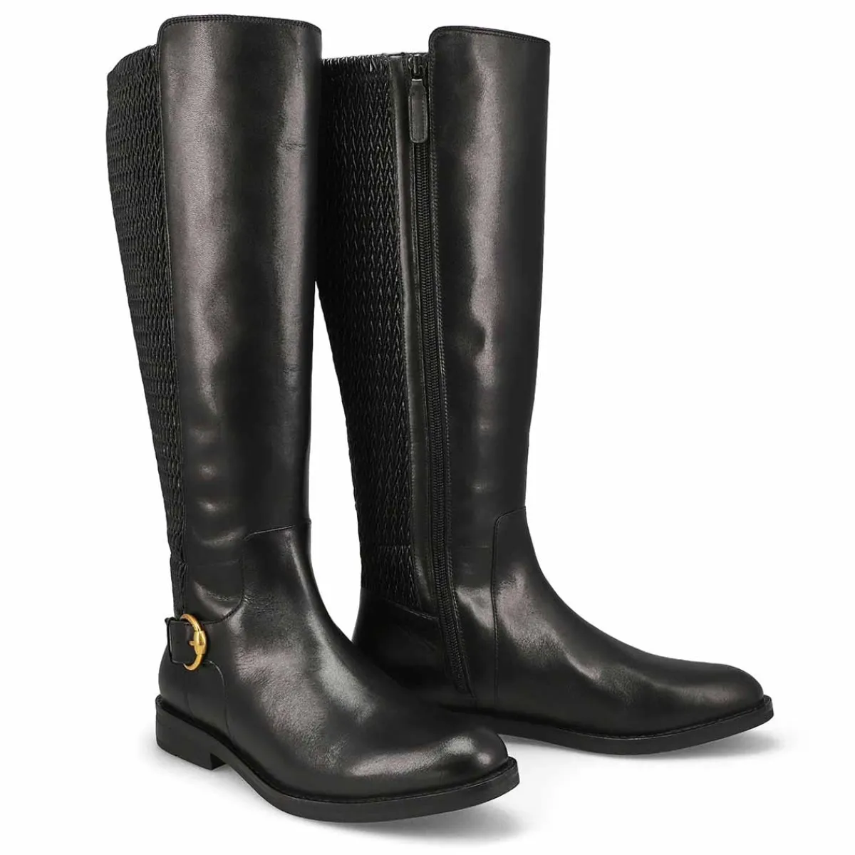 The timeless Clover Stretch Tall Boots from Cole Hann is something you’ve search for season after season. The knee-high boots are crafted with a leather upper with a stretch woven back panel and inside zipper. With a gleaming buckle detailing for added flair. Arch-supporting cushioned footbed adds comfort to every step.