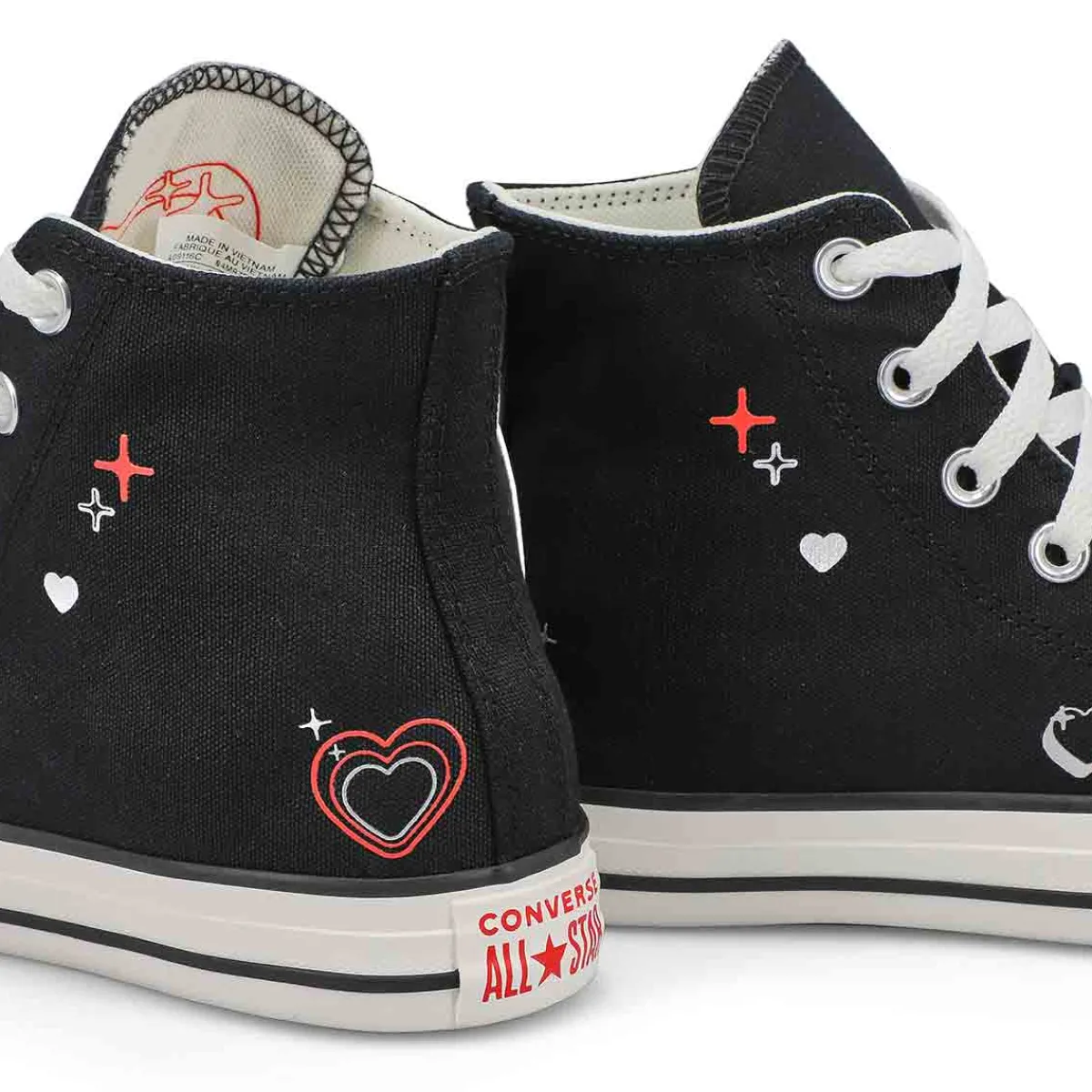 A Little 2000S Love. The Chuck Taylor All Star Lift BEMY2K Hi Top Platform sneakers from Converse has tiny hearts and metallic details that read like a love letter to Y2K. A small heart inside the ankle patch gives you standout style Cupid would envy. Durable canvas upper for that classic Chucks look and feel.