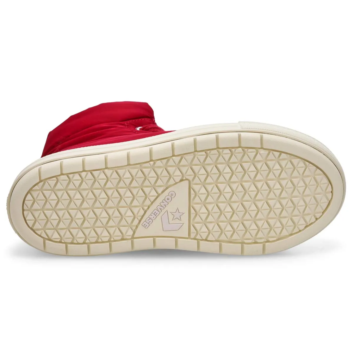 Toasty as a sleeping bag, cool as your favourite Chucks. The cozy Chuck Taylor All Star Elements Winter Puffer Boots from Converse brings the heat—in style and function. Plus, oversized details give every ‘fit a dramatic edge. A water-repellent, insulated polyester upper helps keep you warm and dry. Traction rubber outsole helps provide grip on wet and slippery surfaces.