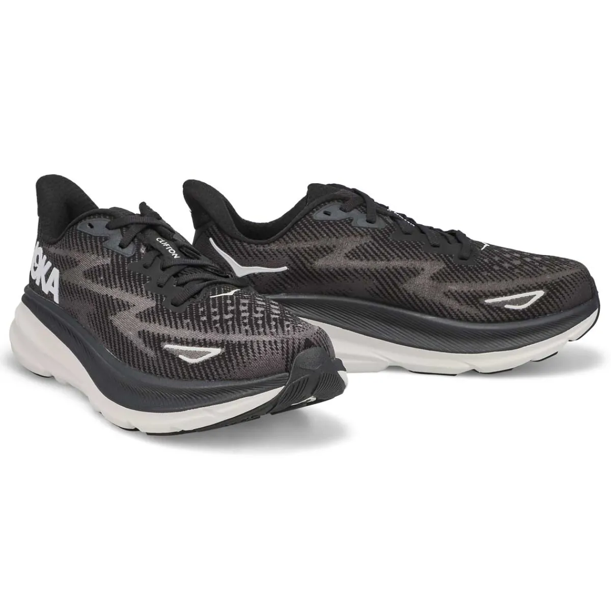 Eliminating weight while adding in stack height, the Clifton 9 black/ white lace up performance Runner from Hoka delivers a revitalized underfoot experience with a responsive new foam and improved outsole design. Removing overlays and hotmelts, the stripped back upper has been consciously crafted with a plusher heel, reflective heel panel, and streamlined tongue with single side medial gusset. Heel-to-toe Drop: 5mm.