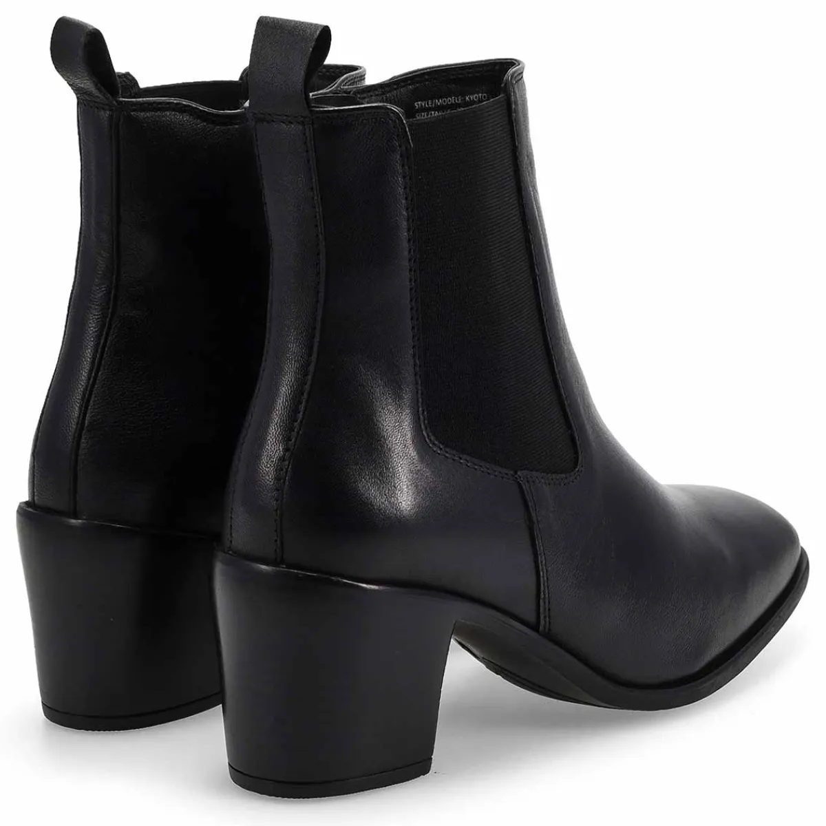 The Kyoto Dress Boot from Maddison by SoftMoc features a full-grain leather upper with elastic goring and an inside zipper for easy on and off. Cushioned footbed for added comfort. DurableTR Outsole. You will want to make the Kyoto Dress Ankle Boot part of your must-have list for this season!