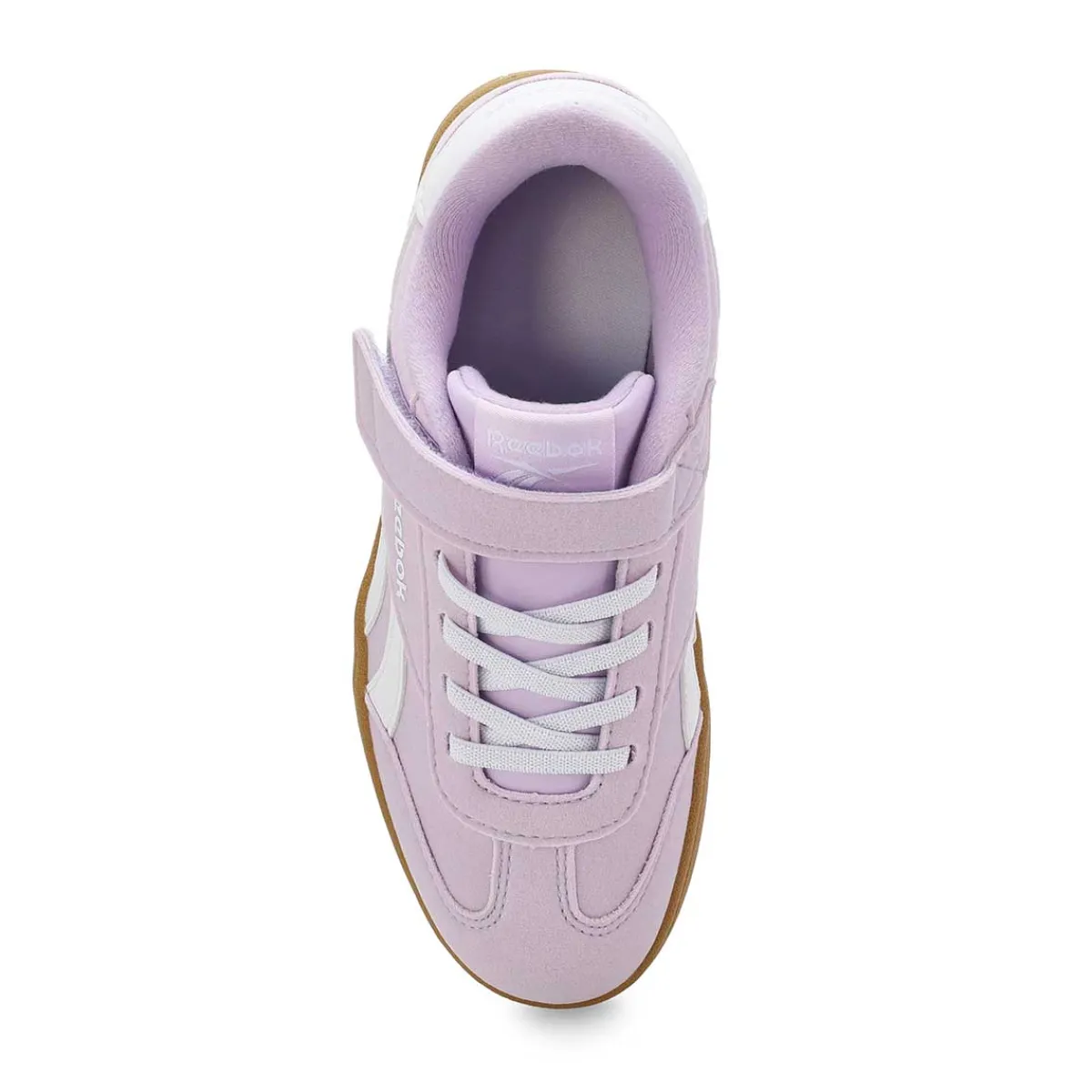 The Smash Edge Digital Gleam/ White/ Gum lace up sneaker from Reebok brings heritage football style to their playground look. Take them on and off quickly and easily with stretchy laces and a strap. A rubber outsole finishes things off perfectly. Cushioned and stylish, these sneakers make a great addition to their footwear collection.