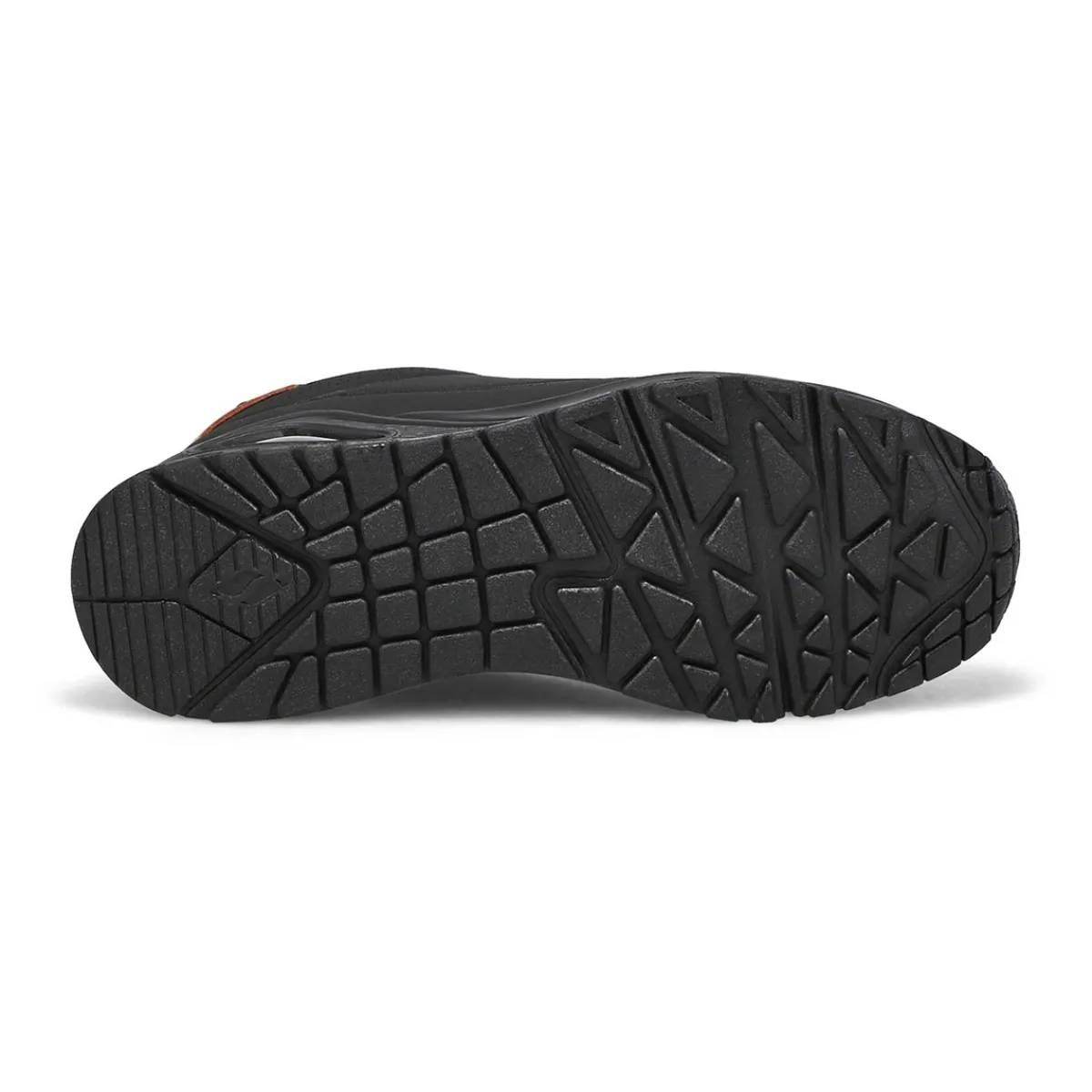 Your little one will turn heads with a bright statement wearing the Uno Gen 1 black lace up sneaker from Skechers. This fashion style comes in lace up styling for a secure fit, the perfect complement to summer wardrobes. Featuring a smooth perforated synthetic upper with an Air-Cooled Memory Foam insole, and a visible Skech-Air air-cushioned midsole.