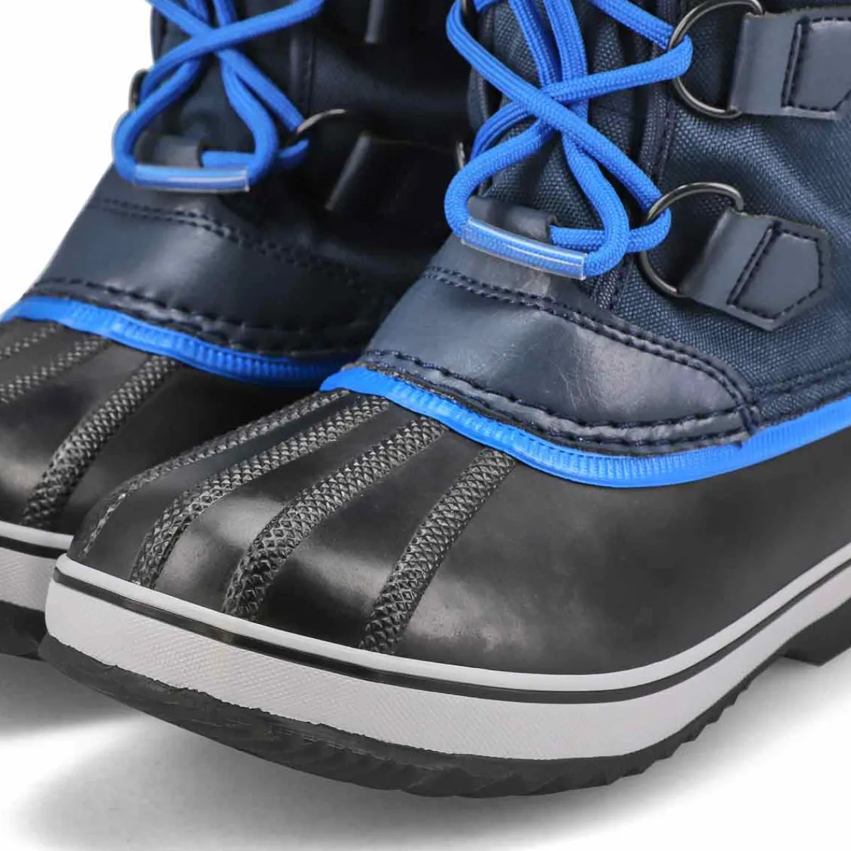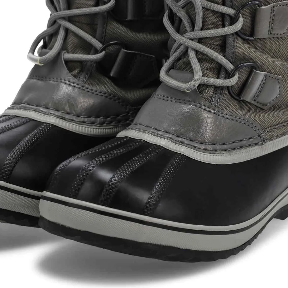 Whether building snowmen or riding sleds, the Yoot Pac waterproof snow boot from Sorel offers warmth, durability, and comfort in a versatile, low-profile design. A waterproof nylon upper with a removable felt liner sports a soft sherpa pile snow cuff. Whatever the forecast says, they’ll take it all on in a boot that packs a punch. It’s waterproof and seam-sealed to keep the chill out, and has cozy insulation to keep warmth in.