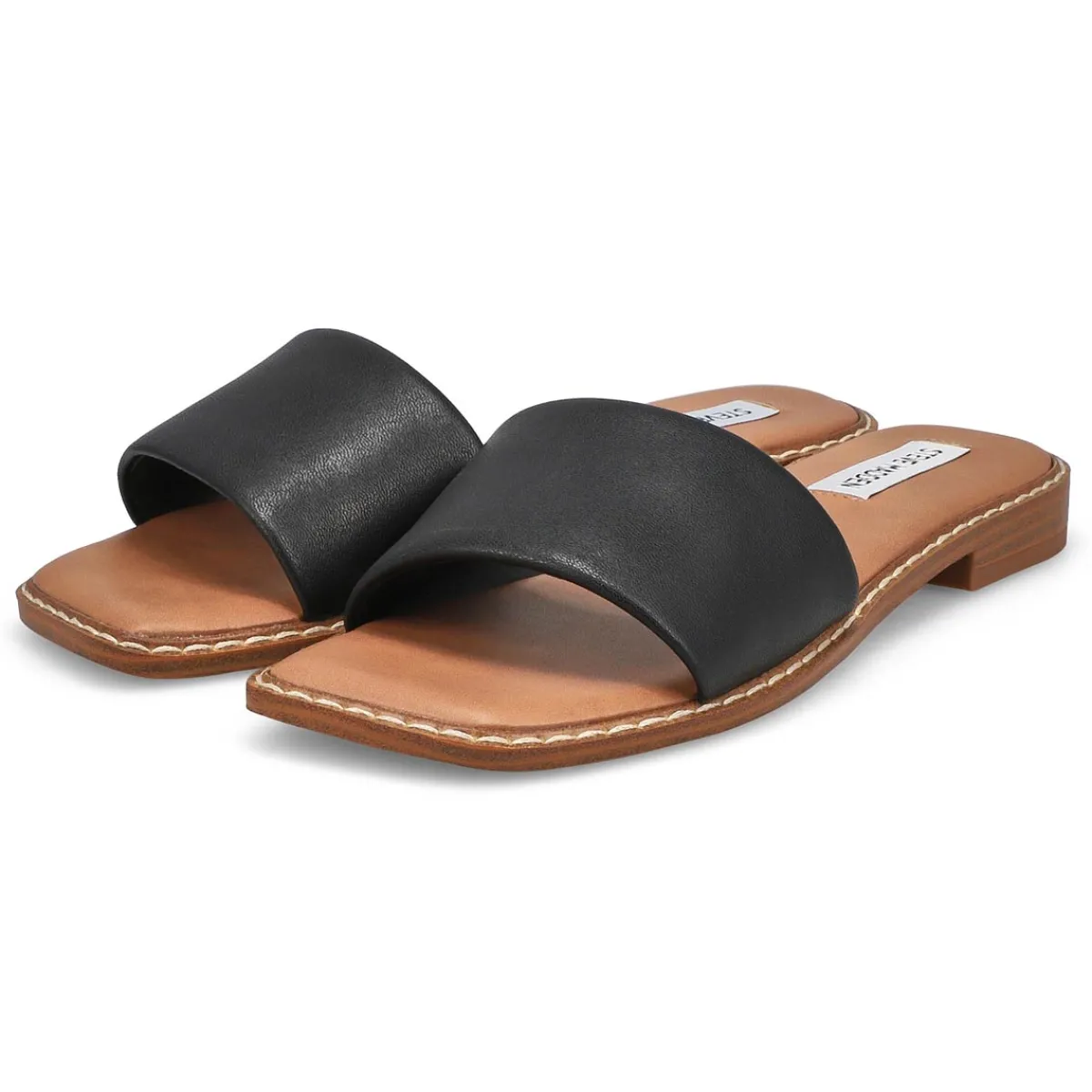 For versatility, style and comfort, Steve Madden has you covered with the Sabrina white slide sandal. Features a genuine leather upper. Slip on construction for easy on /off. Padded footbed for all day comfort and a flexible man-made outsole for great durability. The Sabrina slide is a must have for your wardrobe this season!