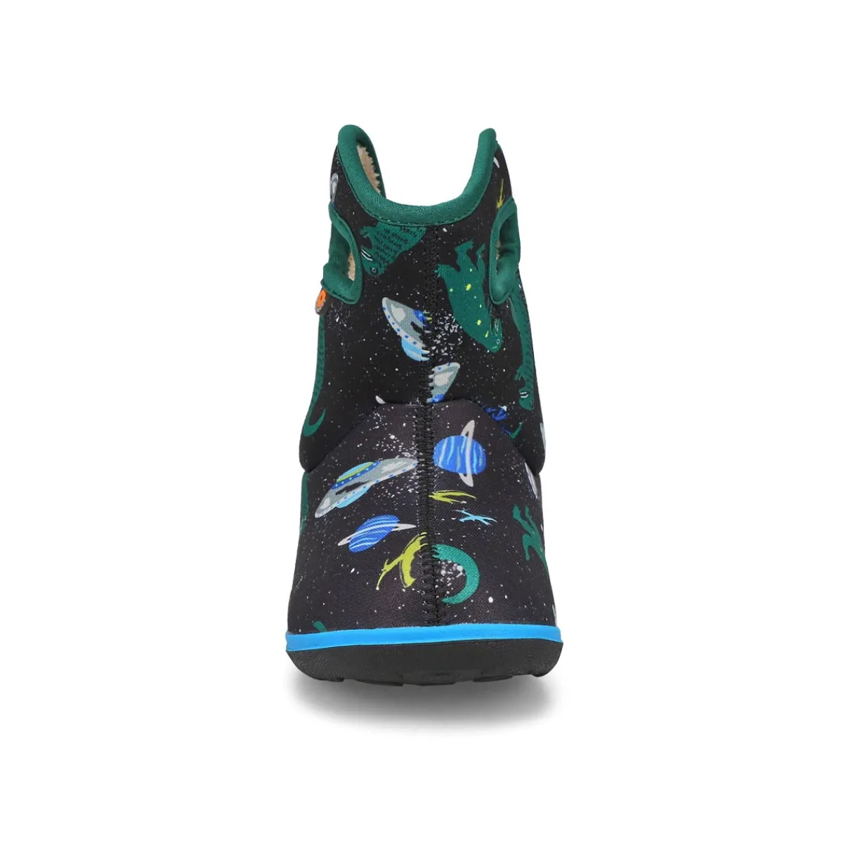 Introduce little ones to the great outdoors. These Baby Bogs II Jurassic Dino waterproof black/ multi from Bogs will keep your little one warm and dry in damp, chilly weather with a waterproof build and Neo-Tech insulation. Fuzzy plush lining adds an extra snuggly feel, and a hook-and-loop strap makes them simple to get on and off.