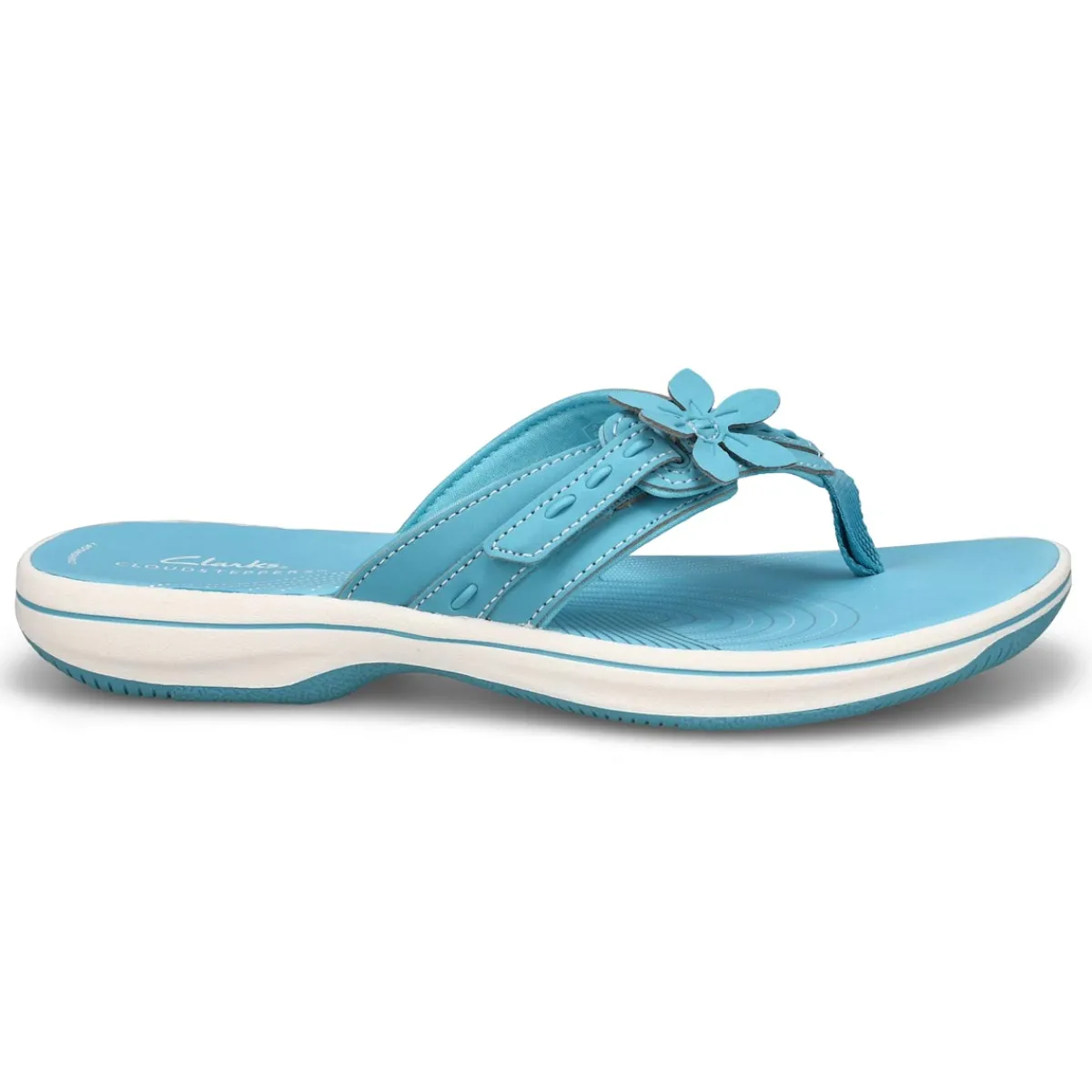 Topped with a pretty flower detail, the Breeze Opal white thong flip-fllop sandal from Clarks is part of their Cloudsteppers collection, so you know that total underfoot comfort is a sure thing. It’s crafted with soft synthetic uppers for a skin-gentle feel, while grippy soles make for confident support and easy-breezy steps.