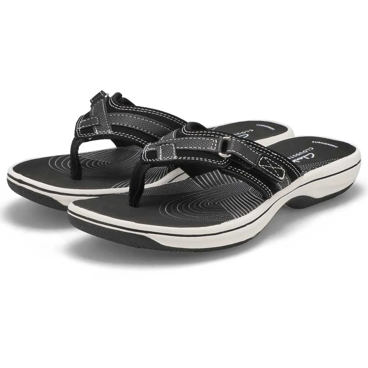 Add some fun design to your warm-weather wear with the Breeze Sea black thong sandal from Clarks. An EVA midsole and a soft EVA footbed allow this classic flip-flop to be incredibly lightweight and comfortably supportive. A subtle closure on its strap makes for a secure, adjustable fit while providing extra visual interest. Perfect for every beach on your summer getaway list.