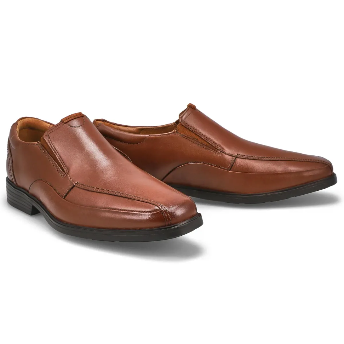 Enhance your formal ensemble with the Clarkslite Ave tan dress shoe from Clarks.The distinctive stitching details add to the visual appeal of the shoe. Elastricized dual-side goring for an easy slip-on – this shoe is easy to slip in and out off. Featuring a genuine leather upper with a textile /synthetic lining that surrounds the foot in comfort. Wide Width
