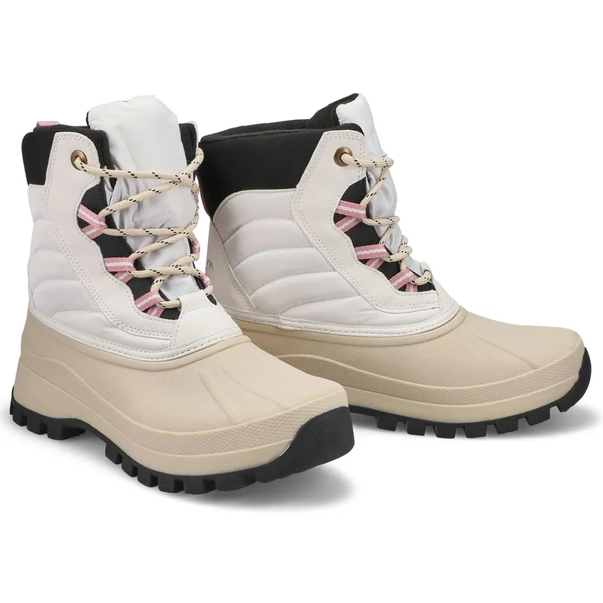 The Fiska Waterproof black winter boot from Cougar is a mid-calf, light-weight nylon and synthetic winter boot. Featuring a rounded toe and front lace closure for a secure fit. Polar plush lining with Thermlite Insulation. Polar fleece lining surrounds the foot in soft comfort. Slip-resistant, Thermoplastic rubber outsole with lightweight EVA midsole.