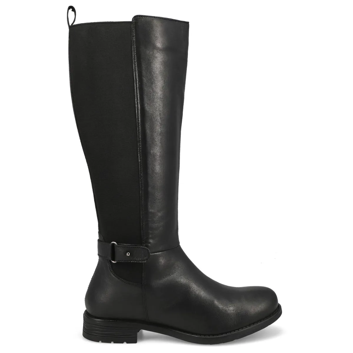 The Omega 2 Tall Riding black boot from Maddison by SoftMoc is the perfect boot choice whether your outfit is demanding a dressed up look or weekend casual. Featuring a genuine leather upper with elastic goring for a great fit. A lightly cushioned footbed with PU/Lycra lining helps create all day comfort. The Omega 2 Tall Riding boot is designed with a durable TPR outsole.