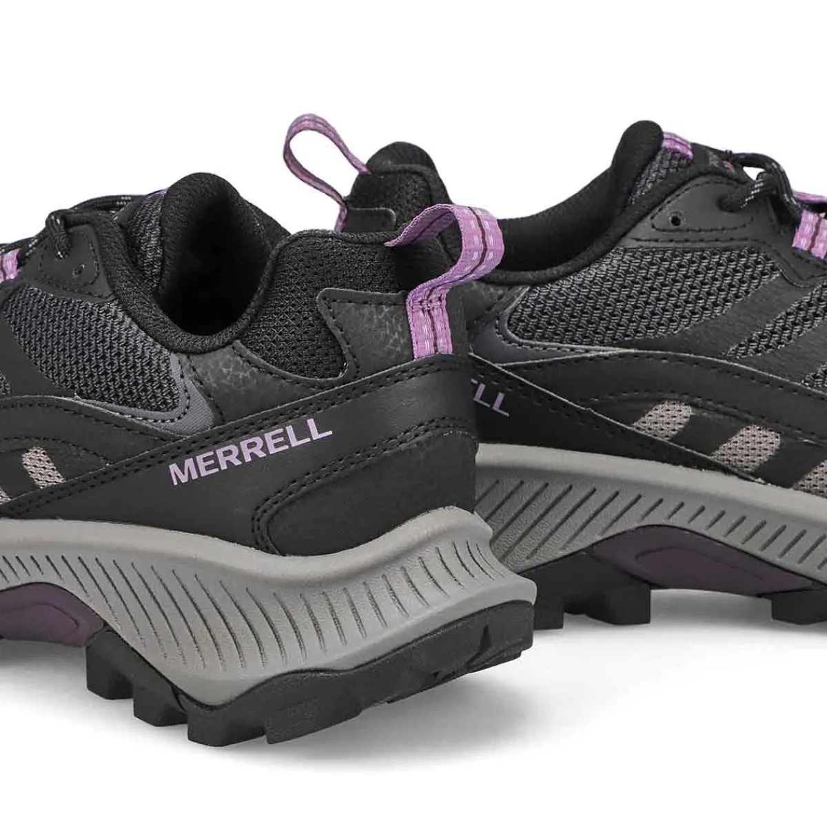 The Moab Speed black lace up hiking shoe from Merrell provides the comfort and protection of a hiking shoe, while also delivering a faster, more athletic style than traditional hikers. Packed with 100% recycled materials from the laces and webbing to the mesh lining and footbed cover, as well as a 50% recycled removable EVA foam footbed, all atop of a Merrell sticky rubber outsole with durable traction that grips when and where you need it.