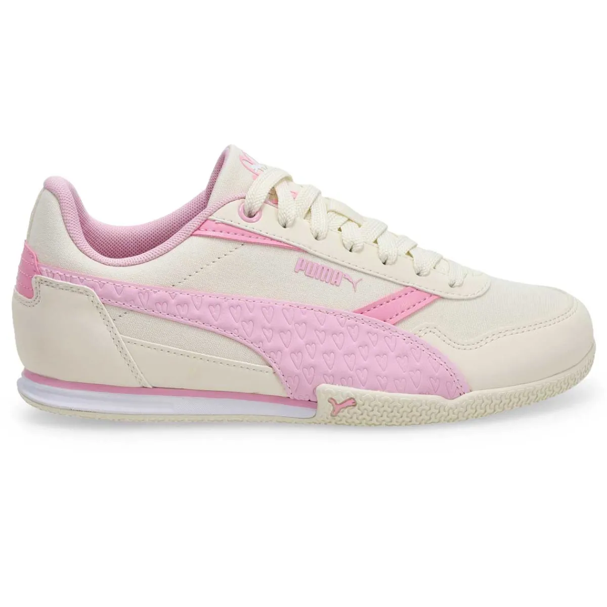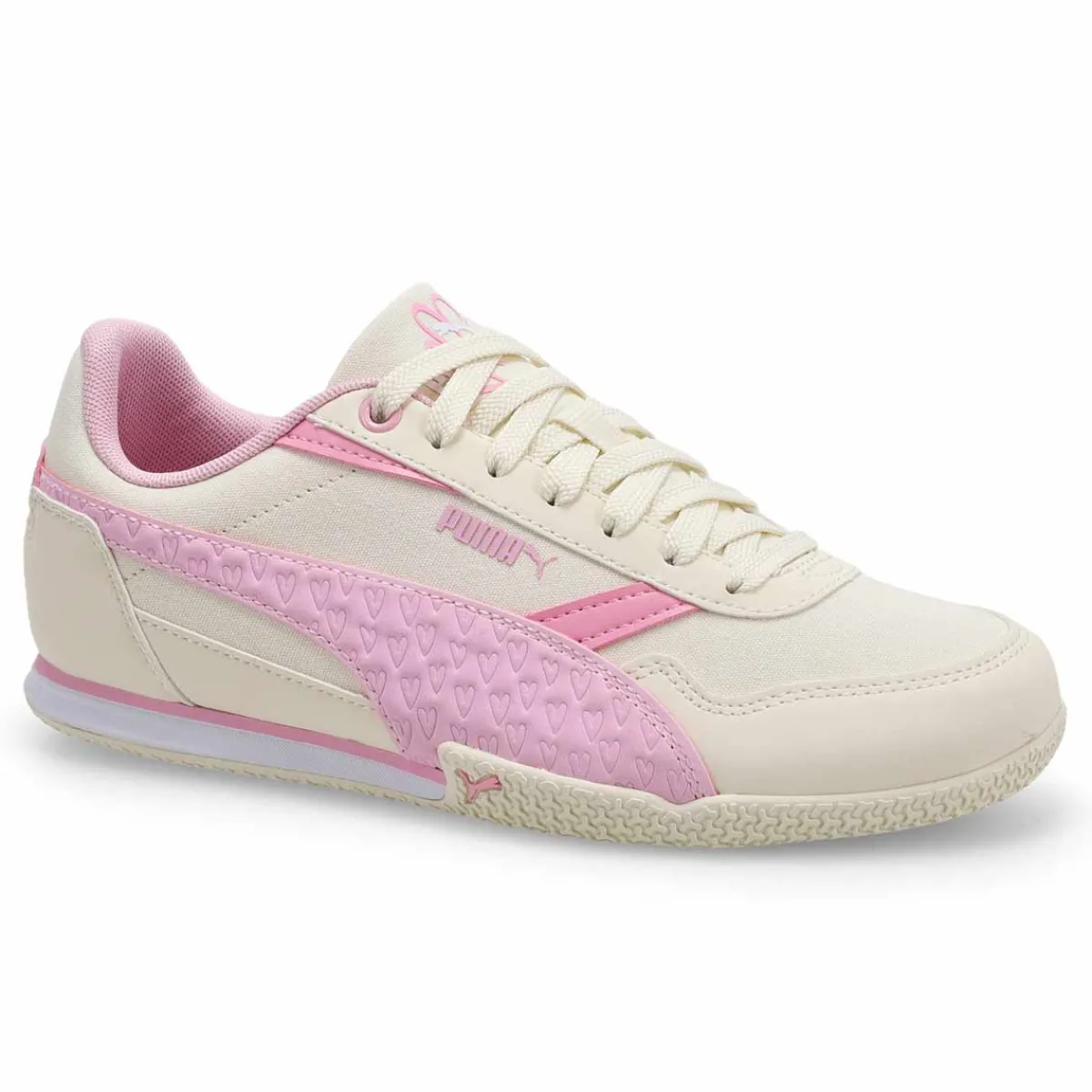 The Bella Donna With Love low profile sneaker from Puma features a leather upper with a sleek synthetic leather formstrip. These kicks bring sporty vibes with a slim, versatile fit. The SOFTFOAM+ sockliner and die-cut EVA tooling deliver all-day ease, making every step effortless. Own your look with PUMA’s bold energy.
