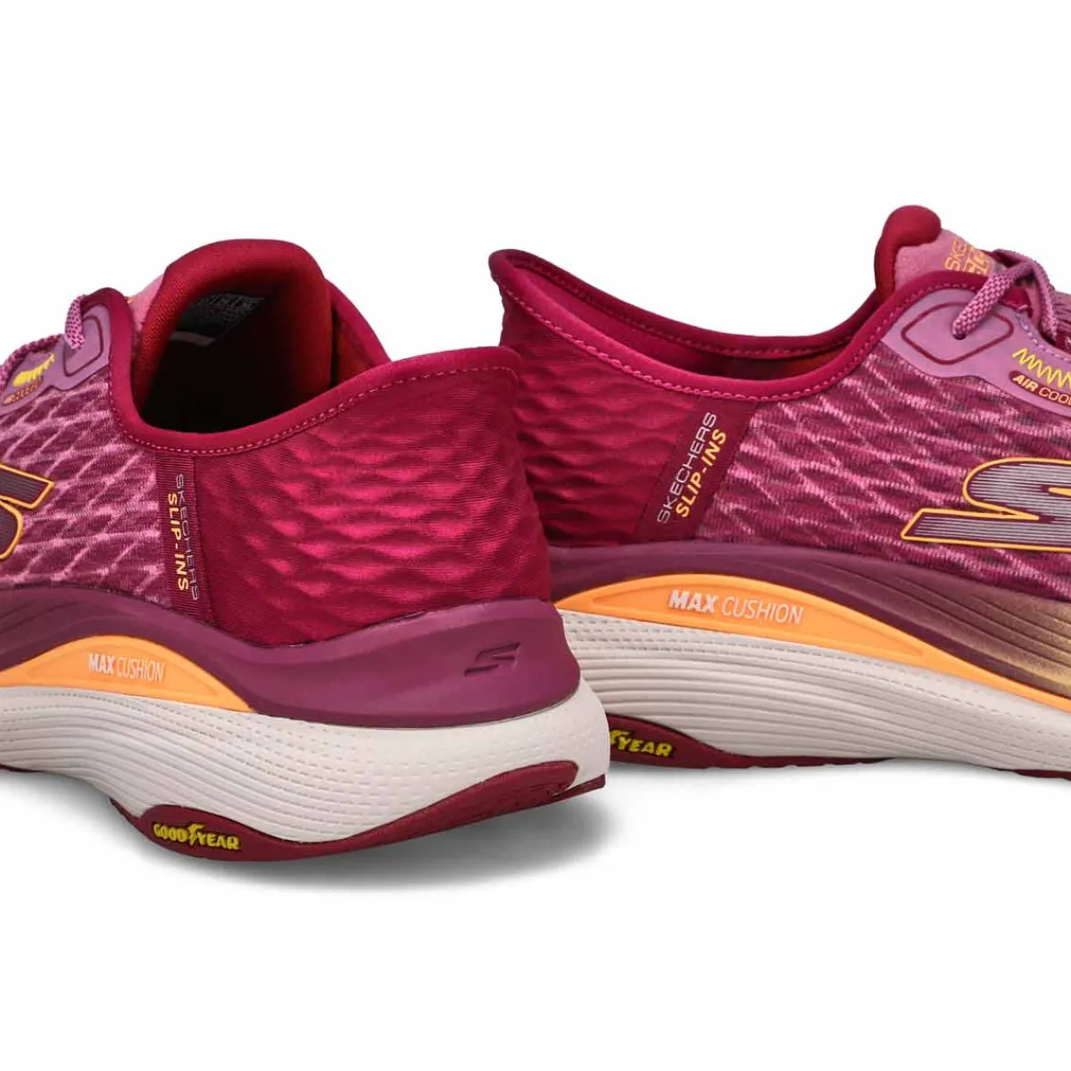 Ultimate supportive comfort meets easy-on convenience in Skechers Hands Free Slip-ins: Max Cushioning Pro Performance Sneaker. Designed with Skechers’ exclusive Heel Pillow holds your foot securtly in place. Features a mono mesh upper with a removable Arch Fit insole. Goodyear Performance Outsole delivers enhanced traction, stability, and durability. Anti-slip under wet and dry conditions.
