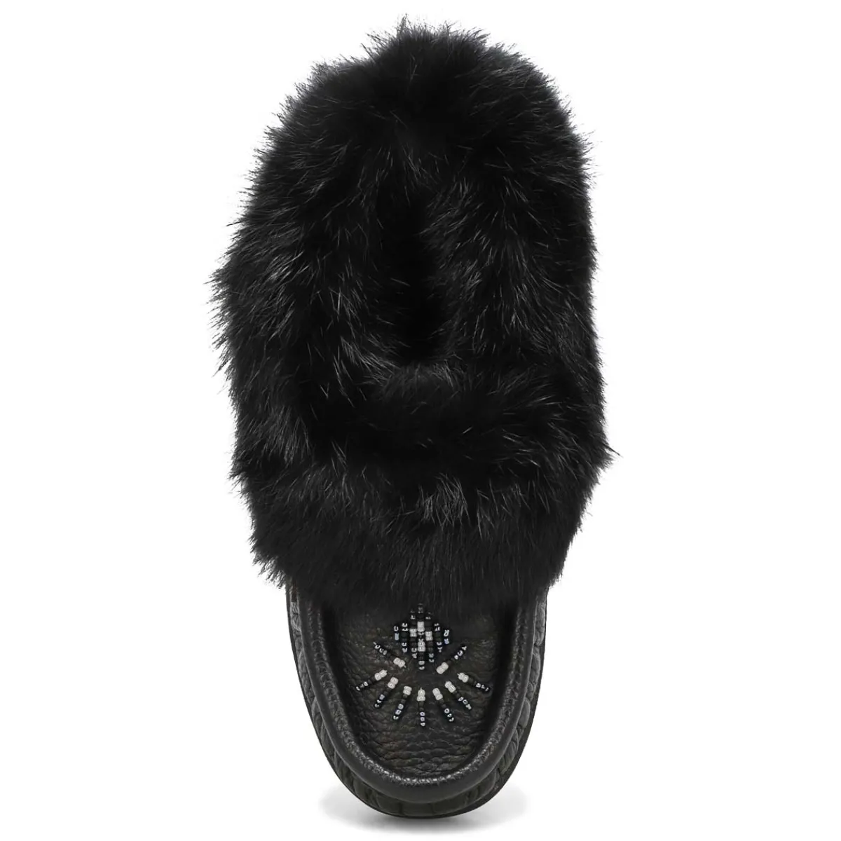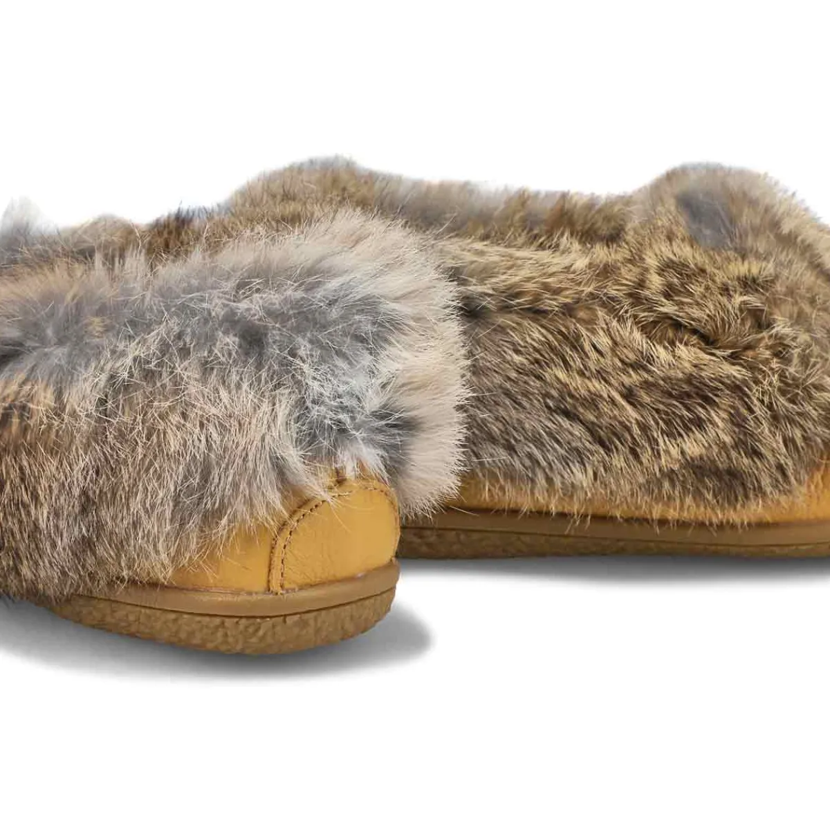 The SoftMoc Cute 5 rabbit fur SoftMocs features a leather upper collared with genuine rabbit fur. The Cute 5 is designed with a new and inproved combination latex and memory foam insole, giving you superior rebound comfort.. New upgraded soft, plush lining surrounds the foot in comfort. The TPR outsole is great for durability. Slight dye transfer may occur during the first few wearings. Style is not made for snow or ice conditions.