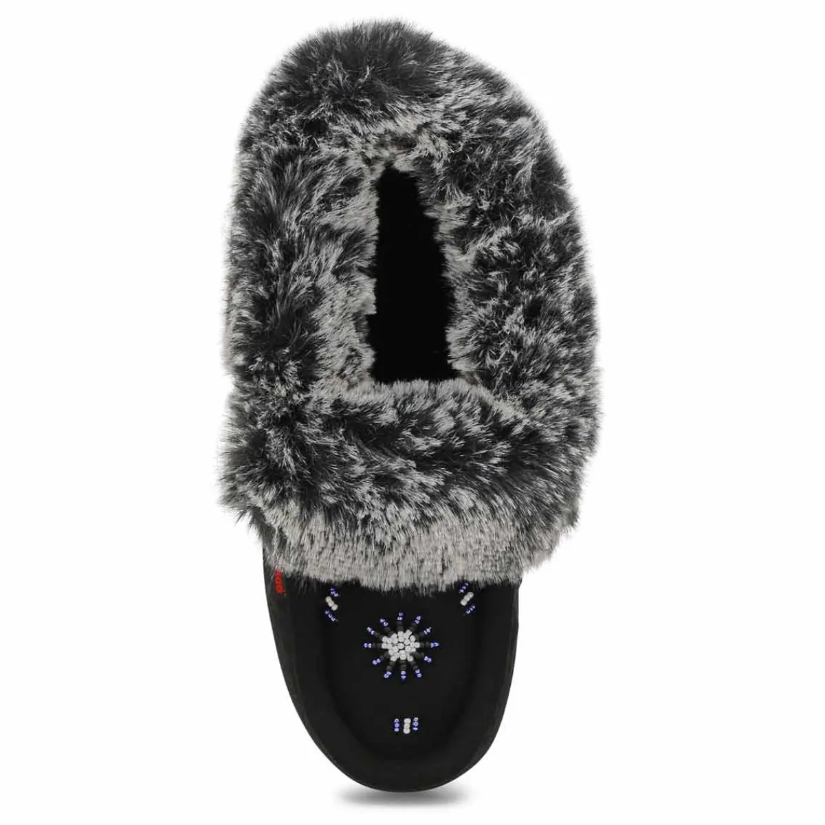 The SoftMoc CUTE 5 V3 black/ grey faux rabbit fur SoftMocs features faux suede upper collared with faux rabbit fur. The Cute 5 V3 is designed with a new and improved combination latex and memory foam insole, giving you superior rebound comfort. New upgraded soft, plush lining surrounds the foot in comfort. The TPR outsole is great for durability. Slight dye transfer may occur during the first few wearings. Style is not made for snow or ice conditions.