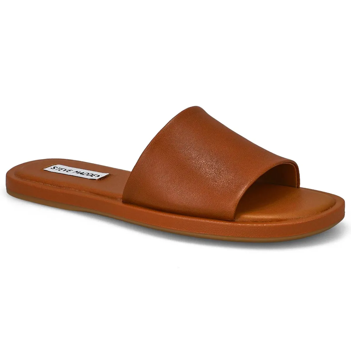 For versatility, style and comfort, Steve Madden has you covered with the Kora brown slide sandal. Features a genuine leather upper. Slip on construction for easy on /off. Padded footbed for all day comfort and a flexible rubber outsole for great durability. The Kora slide is a must have for your wardrobe this season!